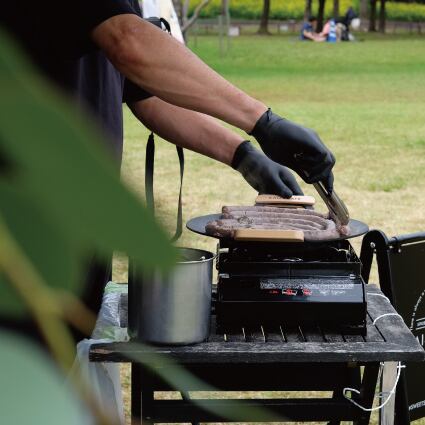 みんなでワイワイBBQであれば、大きなグリドルで丸のまま焼いて10人から15人ぐらいは楽しんでいただけます。