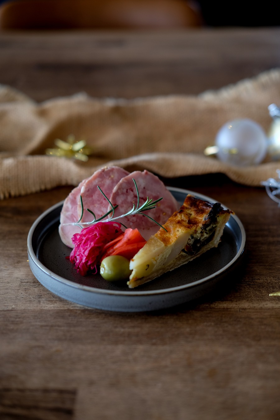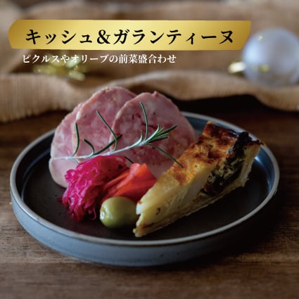 前菜にはカフェの定番「ガランティーヌ」、クリスマスの定番「キッシュ」を