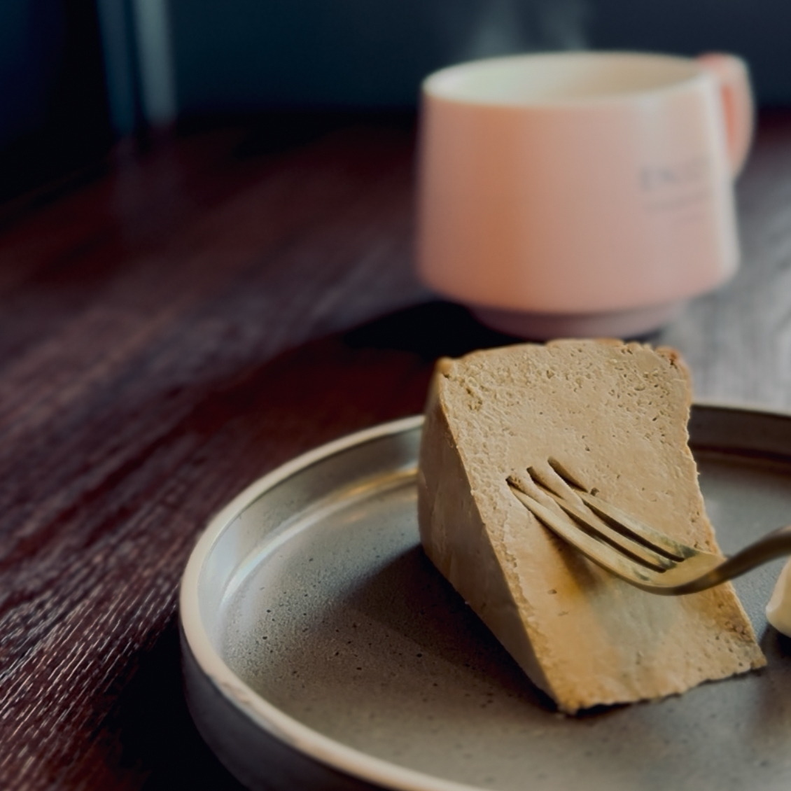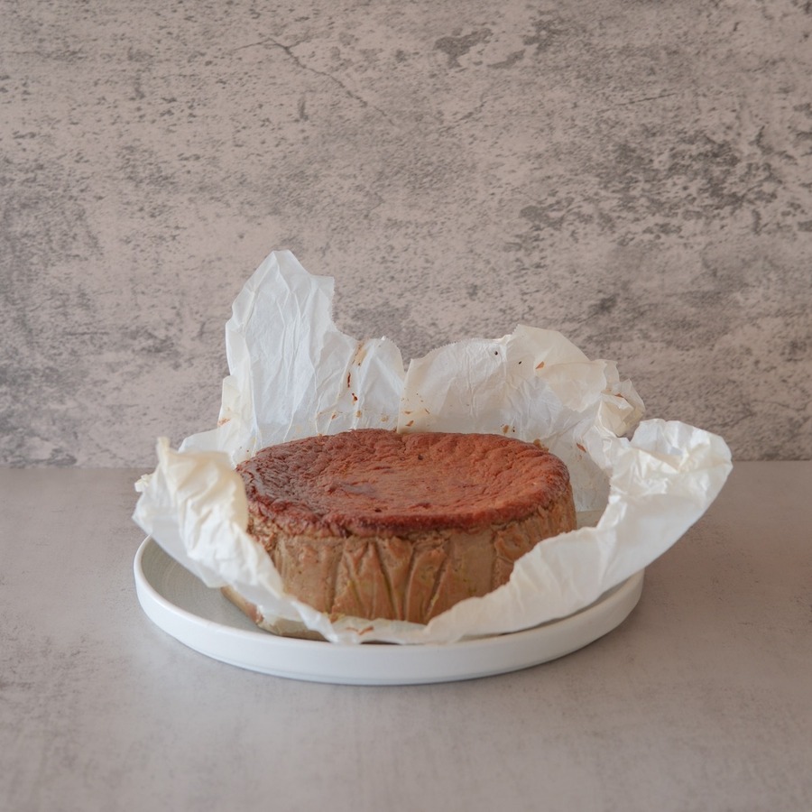 ゆっくりと育った茶葉の甘い焙煎香がふわりと立ち上がり、コクのある滑らかなチーズがそれをやさしく包み、甘さを静かに整え、もうひと口を誘うバスクチーズケーキ。