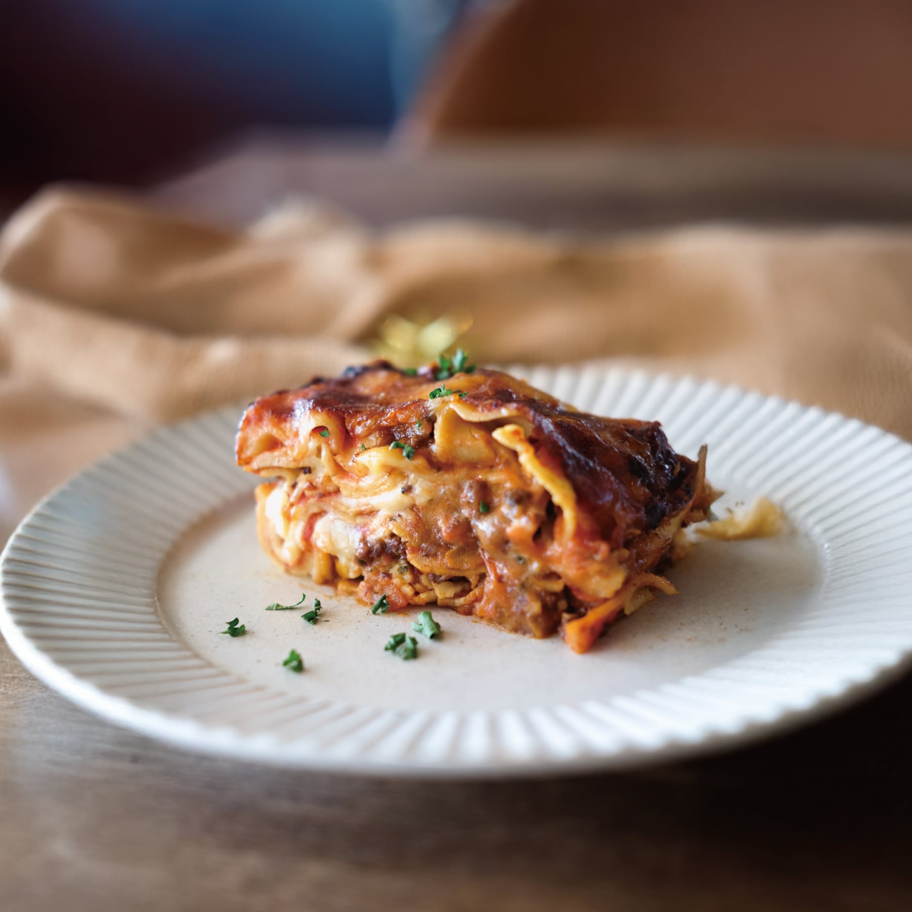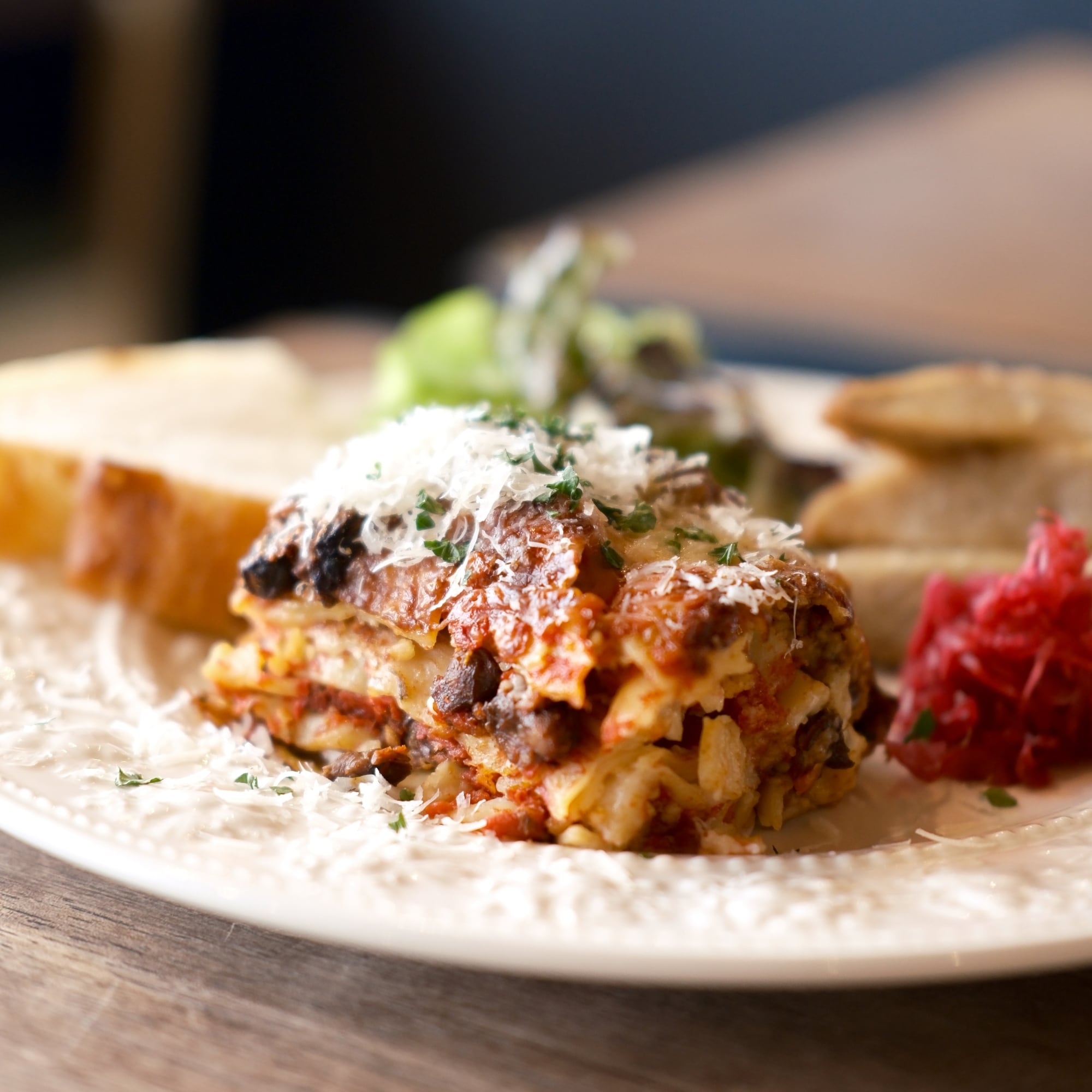 このラザニアの主役は、地元の山で育った鹿肉です。